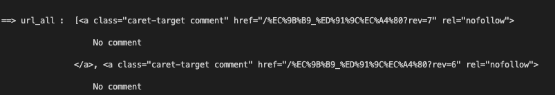 원하는 부분을 불러온다. 여기서는 수정한 날짜와 URL 주소를 불러옴
