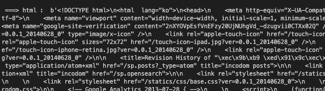 - BeautifulSoup(html, 'html.parser', from_encoding='utf-8')로 해당 사이트의 내용을 불러옴