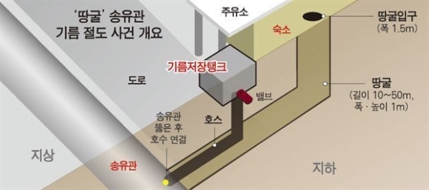 2018년 충북 영동에서 땅굴까지 파서 송유관 기름을 훔친 사건.