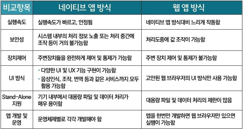 네이티브 앱, 웹 앱, 하이브리드 앱의 비교