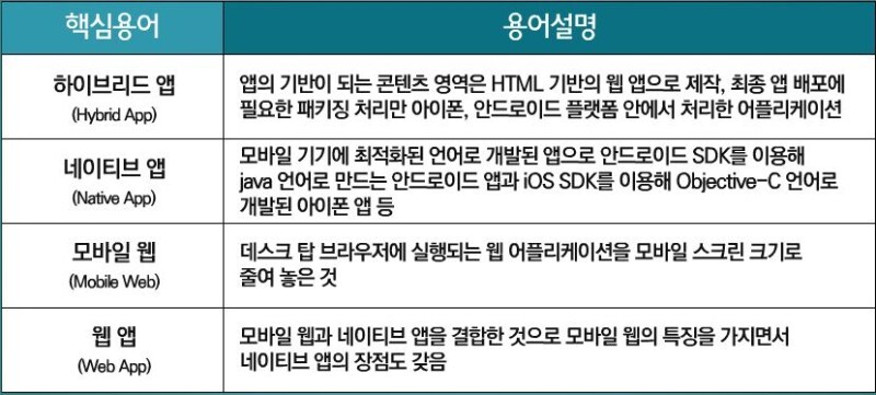 웹 앱, 네이티브 앱, 모바일 웹에 대한 개념