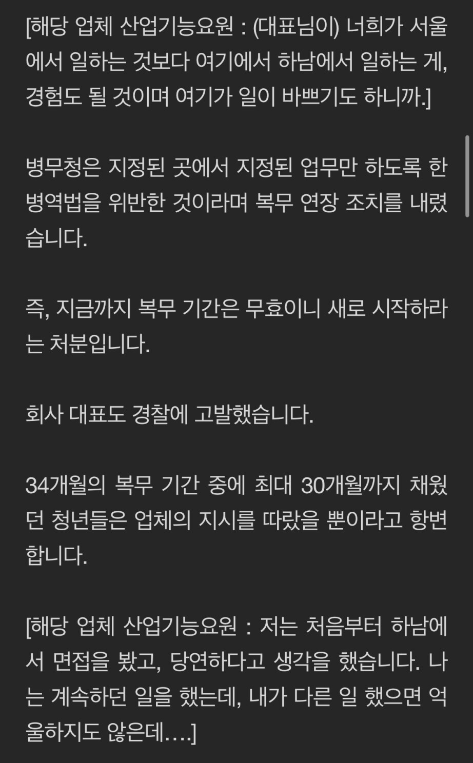3. 그중엔 34개월 중 30개월 근무한 산업요원도 있음