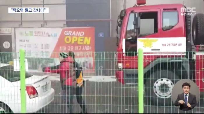 스포츠 센터 주변에 불법 주차차량 때문에 소방차 진입도 지연됐습니다.